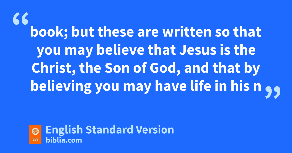 30 uNow Jesus did many other signs vin the presence of the disciples, which are not written in this book; 31 wbut these are written so that you may xbelieve that Jesus is the Christ, ythe Son of God, and that by believing zyou may have life ain his name.