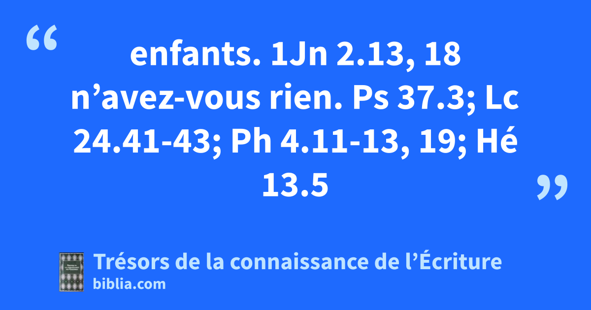 enfants. 1Jn 2.13, 18 n’avez-vous rien. Ps 37.3; Lc 24.41-43; Ph 4.11-13, 19; Hé 13.5