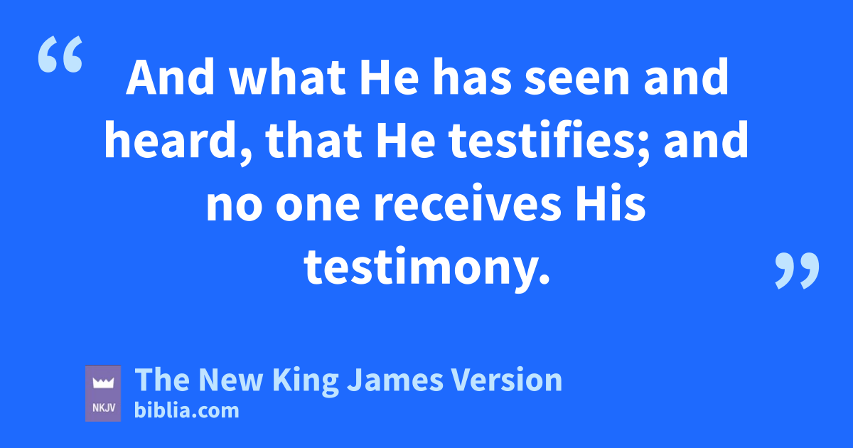 27 John answered and said, c“A man can receive nothing unless it has been given to him from heaven. 28 You yourselves bear me witness, that I said, d‘I am not the Christ,’ but, e‘I have been sent before Him.’ 29 fHe who has the bride is the bridegroom; but gthe friend of the bridegroom, who stands and hears him, rejoices greatly because of the bridegroom’s voice. Therefore this joy of mine is fulfilled. 30 hHe must increase, but I must decrease. 31 iHe who comes from above jis above all; khe who is of the earth is earthly and speaks of the earth. lHe who comes from heaven is above all. 32 And mwhat He has seen and heard, that He testifies; and no one receives His testimony. 33 He who has received His testimony nhas certified that God is true. 34 oFor He whom God has sent speaks the words of God, for God does not give the Spirit pby measure. 35 qThe Father loves the Son, and has given all things into His hand. 36 rHe who believes in the Son has everlasting life; and he who does not believe the Son shall not see life, but the swrath of God abides on him.”