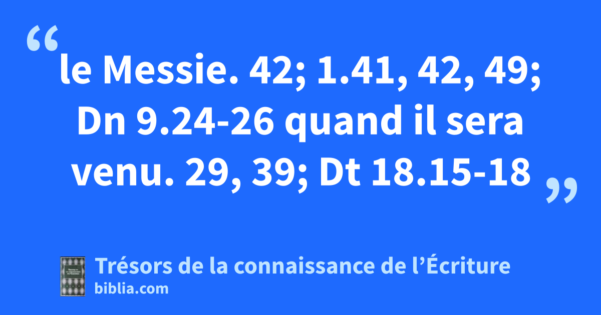 le Messie. 42; 1.41, 42, 49; Dn 9.24-26 quand il sera venu. 29, 39; Dt 18.15-18