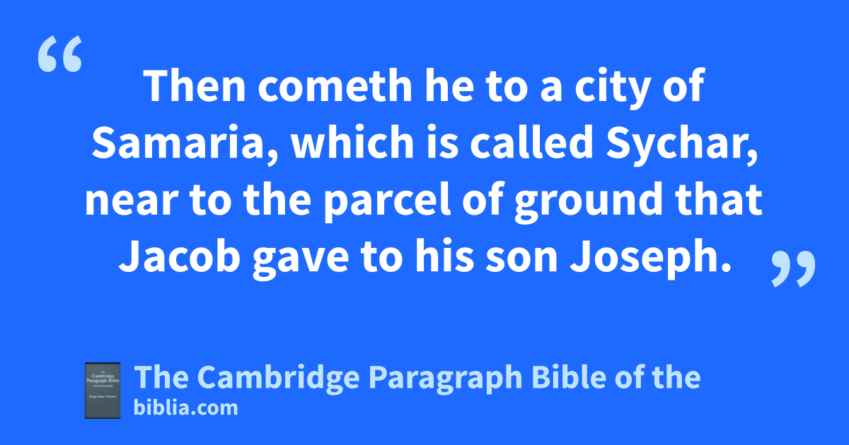 IV. When therefore the Lord knew how the Pharisees had heard that Jesus made and abaptized more disciples than John, 2 (though bJesus himself baptized not, but his disciples,) 3 he left cJudea, and departed dagain into Galilee. 4 And he emust needs go through fSamaria. 5 Then cometh he to a city of Samaria, which is called gSychar, near to the parcel of ground hthat Jacob gave to his son Joseph. 6 Now Jacob’s well was there. Jesus therefore, being wearied iwith his journey, sat kthus on the well: and it was about lthe sixth hour. 7 There cometh a woman of Samaria to draw water: Jesus saith unto her, Give me to drink. 8 (For his disciples were gone away unto mthe city to buy meat.) 9 Then saith the woman of Samaria unto him, How is it that thou, being a Jew, askest drink of me, which am a woman of Samaria? For nthe Jews have no dealings with the Samaritans. 10 Jesus answered and said unto her, If thou knewest the gift of God, and who it is that saith to thee, Give me to drink; thou wouldest have asked of him, and he would have given thee oliving water. 11 The woman saith unto him, Sir, thou hast nothing to draw with, and the well is deep: from whence then hast thou that living water? 12 Art thou greater than our father Jacob, which gave us the well, and drank thereof himself, and his children, and his cattle? 13 Jesus answered and said unto her, Whosoever drinketh of this water shall thirst again: 14 but pwhosoever drinketh of the water that I shall give him shall never thirst; but the water that I shall give him shall be in him a well of water springing up into ppeverlasting life. 15 The woman saith unto him, qSir, give me this water, that I thirst not, neither come hither to draw. 16 Jesus saith unto her, Go, rcall thy husband, and come hither. 17 The woman answered and said, I have no husband. Jesus said unto her, Thou hast well said, I have no husband: 18 for thou hast had five husbands; and he whom thou now hast is not thy husband: in that saidst thou truly. 19 The woman saith unto him, Sir, I perceive that thou art sa prophet. 20 Our fathers worshipped in tthis mountain; and ye say, that in uJerusalem is the place where men ought to worship. 21 Jesus saith unto her, Woman, believe me, wthe hour cometh, xwhen ye shall neither in this mountain, nor yet at Jerusalem, worship ythe Father. 22 Ye worship zye know not what: we know what we worship: afor salvation is of the Jews. 23 But wthe hour cometh, and now is, when the true worshippers shall worship the Father in bspirit and in ctruth: for the Father dseeketh such to worship him. 24 eGod is a Spirit: and they that worship him must worship him in bspirit and in ctruth. 25 The woman saith unto him, I know that fMessias cometh, which is called Christ: when he is come, ghe will htell us all things. 26 Jesus saith unto her, iI that speak unto thee am he.