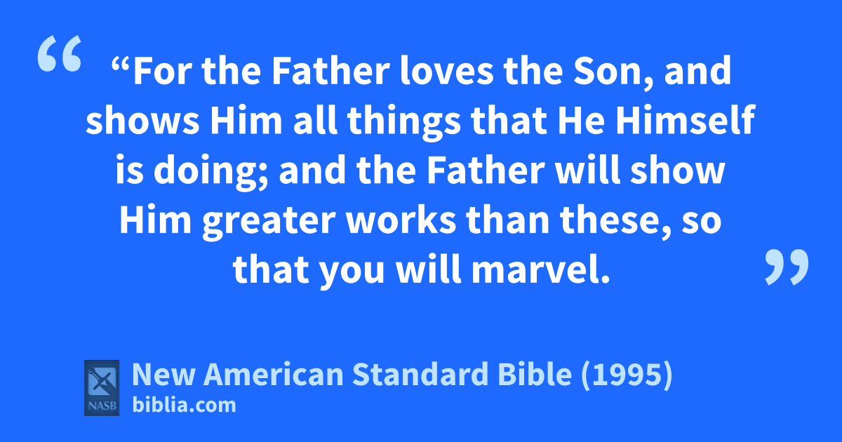 20 “aFor the Father loves the Son, and shows Him all things that He Himself is doing; and the Father will show Him bgreater works than these, so that you will marvel.