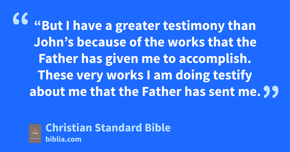36 “But I have a greater testimony than John’s because of the works that the Father has given me to accomplish.aa These very works I am doing testify about me that the Father has sentab me. 37 The Father who sent me has himself testifiedac about me. You have not heard his voice at any time, and you haven’t seen his form.ad 38 You don’t have his word residing in you, because you don’t believe the one he sent. 39 You pore over the Scripturesae because you think you have eternal life in them, and yet they testify about me.af 40 But you are not willingag to come to meah so that you may have life.