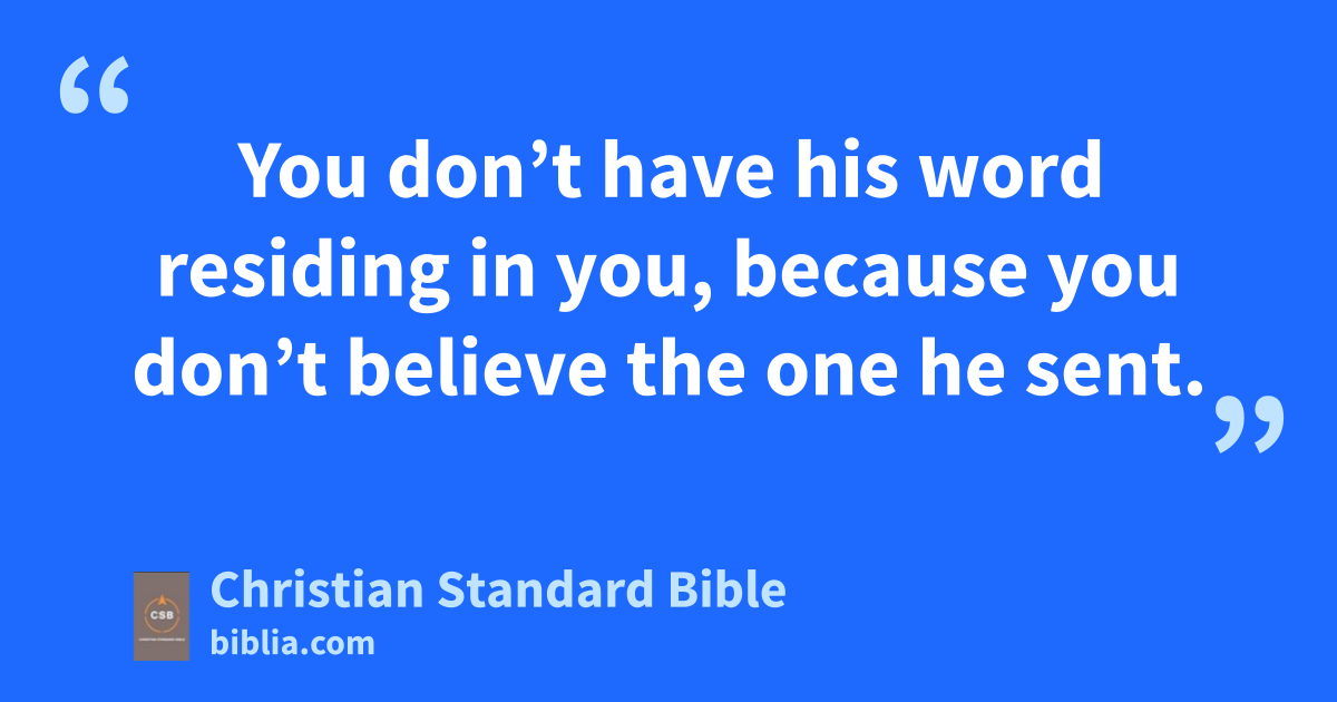 36 “But I have a greater testimony than John’s because of the works that the Father has given me to accomplish.aa These very works I am doing testify about me that the Father has sentab me. 37 The Father who sent me has himself testifiedac about me. You have not heard his voice at any time, and you haven’t seen his form.ad 38 You don’t have his word residing in you, because you don’t believe the one he sent. 39 You pore over the Scripturesae because you think you have eternal life in them, and yet they testify about me.af 40 But you are not willingag to come to meah so that you may have life.