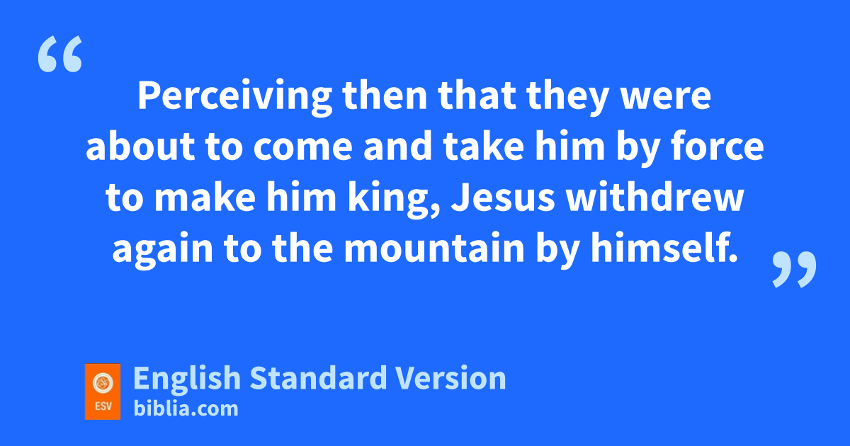 15 zPerceiving then that they were about to come and take him by force to make him king, Jesus awithdrew again to bthe mountain by himself.