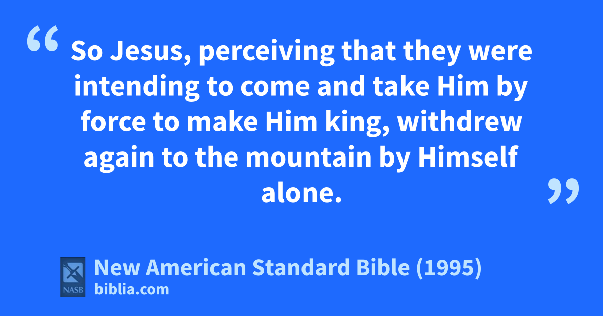 15 So Jesus, perceiving that they were 1intending to come and take Him by force ato make Him king, bwithdrew again to cthe mountain by Himself alone.