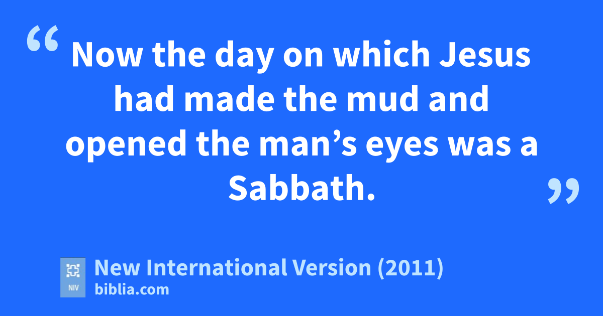 13 They brought to the Pharisees the man who had been blind. 14 Now the day on which Jesus had made the mud and opened the man’s eyes was a Sabbath.b 15 Therefore the Pharisees also asked him how he had received his sight.c “He put mud on my eyes,” the man replied, “and I washed, and now I see.”