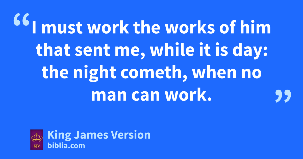 9 And as Jesus passed by, he saw a man which was blind from his birth. 2 And his disciples asked him, saying, aMaster, bwho did sin, this man, or chis parents, that he was born blind? 3 Jesus answered, Neither hath this man sinned, nor his parents: but dthat the works of God should be made manifest in him. 4 I must work ethe works of him that sent me, fwhile it is day: the night cometh, when no man can work. 5 As long as I am in the world, gI am the light of the world. 6 When he had thus spoken, hhe spat on the ground, and made clay of the spittle, and he ||anointed the eyes of the blind man with the clay, 7 And said unto him, Go, wash in ithe pool of Siloam, (which is by interpretation, Sent.) jHe went his way therefore, and washed, and came seeing.