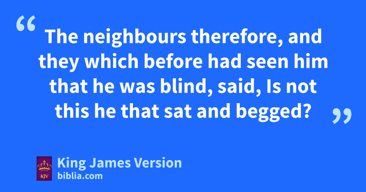 8 The neighbours therefore, and they which before had kseen him that he was blind, said, Is not this he lthat sat and begged? 9 Some said, This is he: others said, He is like him: but he said, I am he. 10 Therefore said they unto him, How were thine eyes opened? 11 He answered and said, mA man that is called Jesus made clay, and anointed mine eyes, and said unto me, Go to the pool of Siloam, and wash: and I went and washed, and I received sight. 12 Then said they unto him, Where is he? He said, I know not.