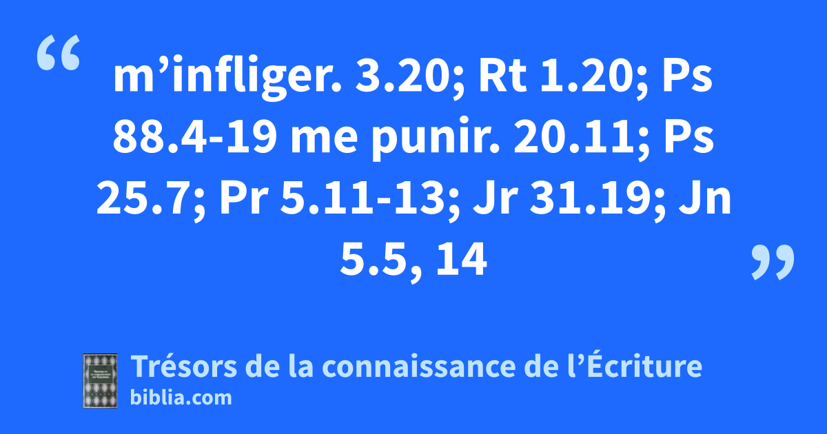 m’infliger. 3.20; Rt 1.20; Ps 88.4-19 me punir. 20.11; Ps 25.7; Pr 5.11-13; Jr 31.19; Jn 5.5, 14