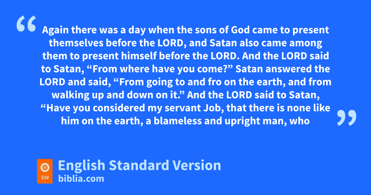 2 Again mthere was a day when the sons of God came to present themselves before the Lord, and Satan also came among them to present himself before the Lord. 2 And the Lord said to Satan, “From where have you come?” Satan answered the Lord and said, “From going to and fro on the earth, and from walking up and down on it.” 3 And the Lord said to Satan, “Have you considered my servant Job, that there is none like him on the earth, a blameless and upright man, who fears God and turns away from evil? He still nholds fast his integrity, although you incited me against him to destroy him owithout reason.” 4 Then Satan answered the Lord and said, “Skin for skin! All that a man has he will give for his life. 5 But pstretch out your hand and touch his bone and his flesh, and he will qcurse you to your face.” 6 And the Lord said to Satan, “Behold, he is in your hand; only spare his life.”