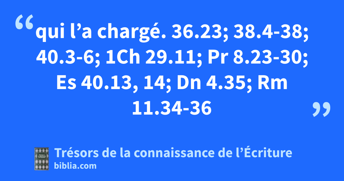 qui l’a chargé. 36.23; 38.4-38; 40.3-6; 1Ch 29.11; Pr 8.23-30; Es 40.13, 14; Dn 4.35; Rm 11.34-36