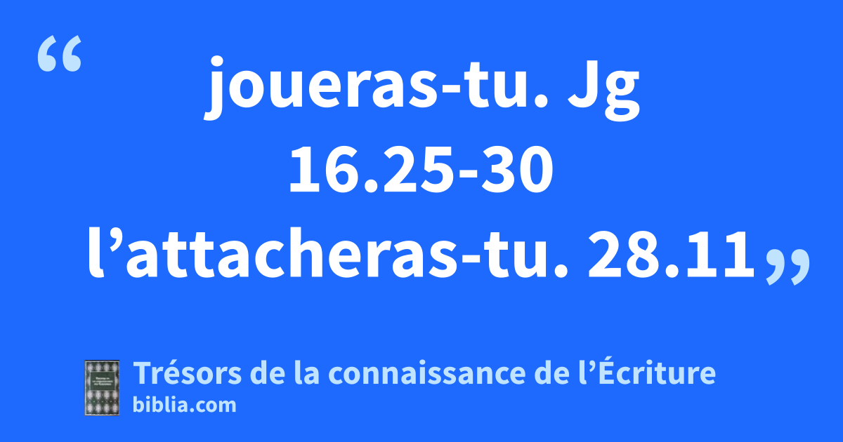 joueras-tu. Jg 16.25-30 l’attacheras-tu. 28.11