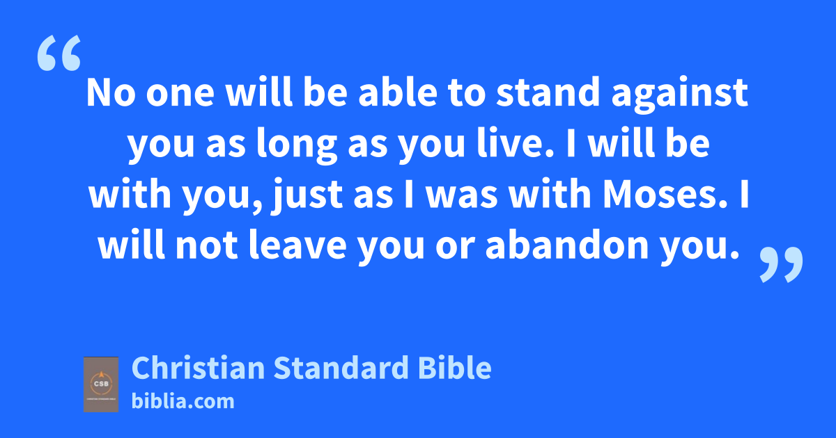 1 After the death of Mosesa the Lord’s servant, the Lord spoke to Joshua son of Nun,b Moses’s assistant: 2 “Moses my servant is dead.c Now you and all the people prepare to cross over the Jordand to the land I am giving the Israelites. 3 I have given you every place where the sole of your foot treads,e just as I promised Moses. 4 Your territory will be from the wilderness and Lebanonf to the great river, the Euphrates River—all the land of the Hittitesg—and west to the Mediterranean Sea.h 5 No one will be able to stand against you as long as you live.i I will be with you, just as I was with Moses. I will not leave you or abandon you.j