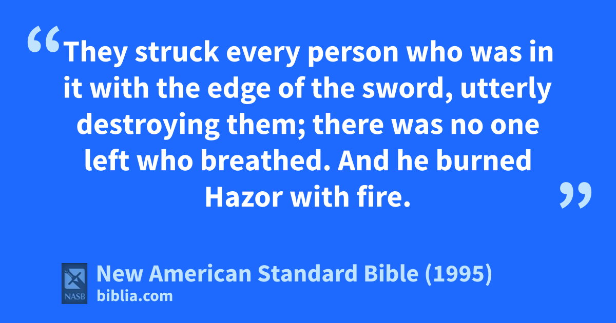 11 aThey struck every person who was in it with the edge of the sword, 1utterly destroying them; there was no one left who breathed. And he burned Hazor with fire.
