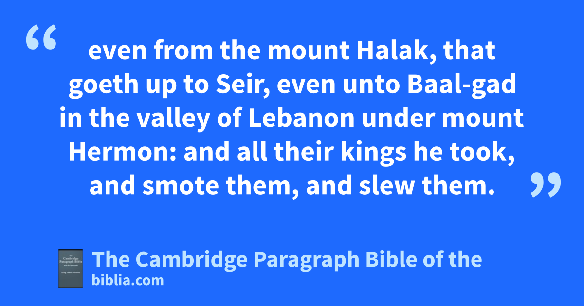 6 And the Lord said unto Joshua, nBe not afraid because of them: for to morrow about this time will I deliver them up all slain before Israel: thou shalt ohough their horses, and burn ptheir chariots with fire. 7 So Joshua came, and all the people of war with him, against them by the waters of Merom qsuddenly; and they fell upon them. 8 And the Lord delivered them into the hand of Israel, who smote them, and chased them unto * great Zidon, and unto * Misrephoth-maim, and unto the valley of rMizpeh eastward; and they smote them, until they left them none remaining. 9 And Joshua did unto them sas the Lord bade him: he houghed their horses, and burnt their chariots with fire. 10 And Joshua at that time turned back, and took Hazor, and smote the king thereof with the sword: for Hazor beforetime was the head of all those kingdoms. 11 And they smote all the souls that were therein with the edge of the sword, utterly destroying them: there was not * any left to breathe: and he burnt Hazor with fire. 12 And all the cities of those kings, and all the kings of them, did Joshua take, and smote them with the edge of the sword, and he utterly destroyed them, tas Moses the servant of the Lord commanded. 13 But as for the cities that stood still * in their strength, Israel burned none of them, save Hazor only; that did Joshua burn. 14 And all the spoil of these cities, and the cattle, the children of Israel took for a prey unto themselves; but every man they smote with the edge of the sword, until they had destroyed them, neither left they any to breathe. 15 uAs the Lord commanded Moses his servant, so vdid Moses command Joshua, and wso did Joshua; * he left nothing undone of all that the Lord commanded Moses. 16 * So Joshua took all that land, xthe hills, and all the south country, yand all the land of Goshen, and the valley, and the plain, and zthe mountain of Israel, and the valley of the same; 17 aeven from * the mount Halak, that goeth up to bSeir, even unto cBaal-gad in the valley of Lebanon under dmount Hermon: and all their kings he took, and smote them, and slew them. 18 Joshua made war e a long time with all those kings. 19 There was not a city that made peace with the children of Israel, save fthe Hivites the inhabitants of Gibeon: all other they took in battle. 20 For git was of the Lord to harden their hearts, that they should come against Israel in battle, that he might destroy them utterly, and that they might have no favour, but that he might destroy them, has the Lord commanded Moses. 21 And at that time came Joshua, and cut off ithe Anakims from the mountains, from kHebron, from lDebir, from Anab, and from all the mountains of Judah, and from all the mountains of Israel: Joshua destroyed them utterly with their cities. 22 There was none of the Anakims left in the land of the children of Israel: only in mGaza, in nGath, and in oAshdod, there remained. 23 So Joshua took the whole land, paccording to all that the Lord said unto Moses; and qJoshua gave it for an inheritance unto Israel according to their rdivisions by their tribes. sAnd the land rested from war.