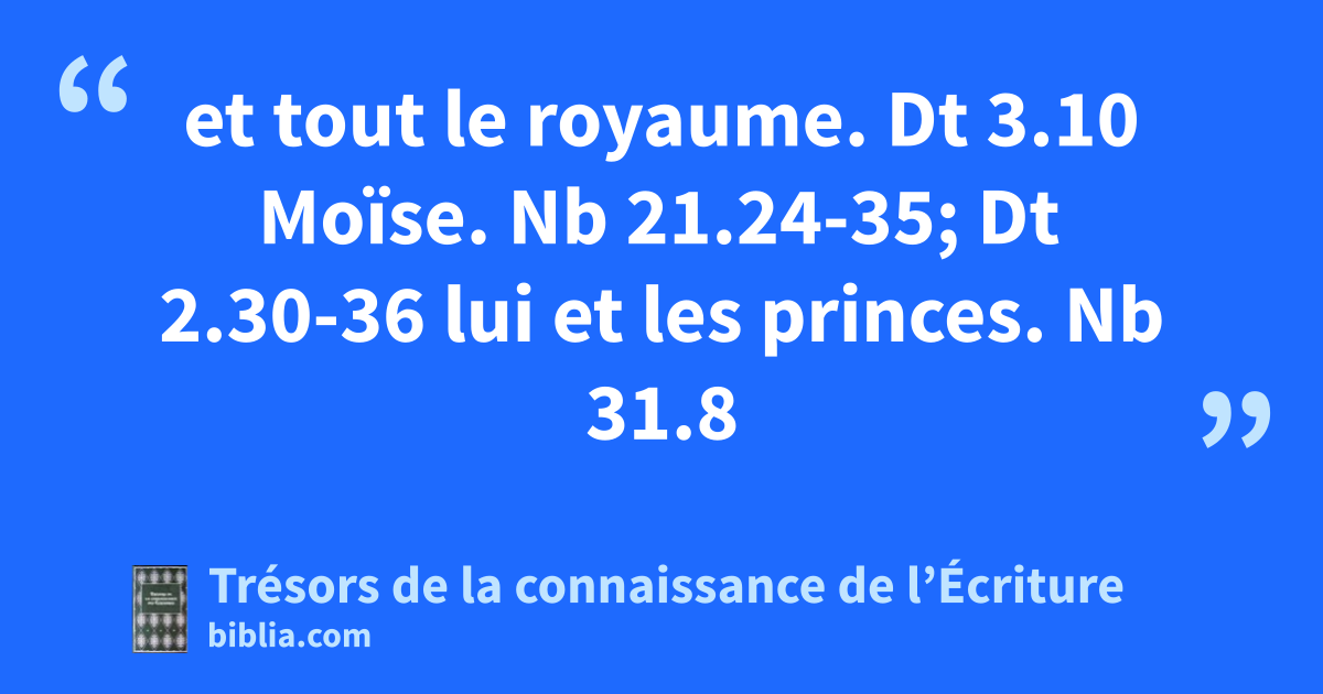 et tout le royaume. Dt 3.10 Moïse. Nb 21.24-35; Dt 2.30-36 lui et les princes. Nb 31.8