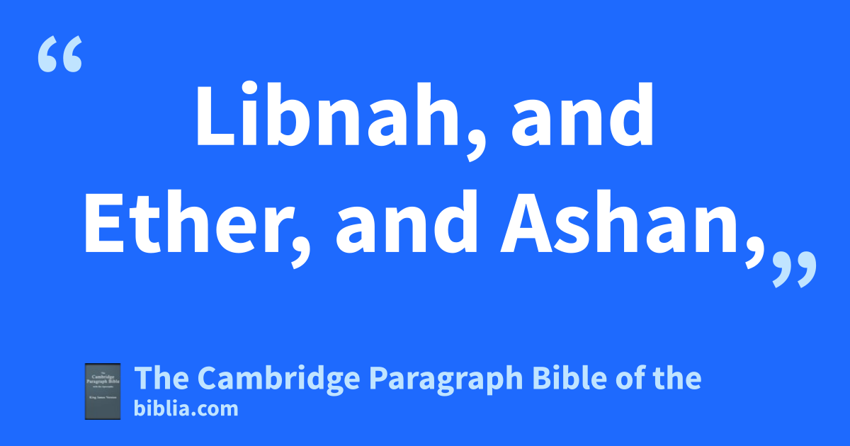 48 And in the mountains, Shamir, and rJattir, and sSocoh, 49 and Dannah, and tKirjath-sannah, which is Debir, 50 and Anab, and uEshtemoh, and Anim, 51 and wGoshen, and xHolon, and yGiloh; eleven cities with their villages. 52 Arab, and zDumah, and Eshean, 53 and * Janum, and Beth-atappuah, and Aphekah, 54 and Humtah, and bKirjath-arba, which is Hebron, and Zior; nine cities with their villages. 55 cMaon, dCarmel, and eZiph, and fJuttah, 56 and gJezreel, and Jokdeam, and Zanoah, 57 Cain, Gibeah, and hTimnah; ten cities with their villages. 58 Halhul, Beth-zur, and iGedor, 59 and Maarath, and Beth-anoth, and Eltekon; six cities with their villages. 60 jKirjath-baal, which is Kirjath-jearim, and Rabbah; two cities with their villages.