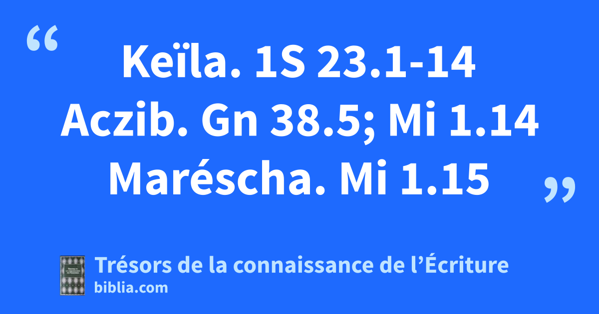 Keïla. 1S 23.1-14 Aczib. Gn 38.5; Mi 1.14 Maréscha. Mi 1.15