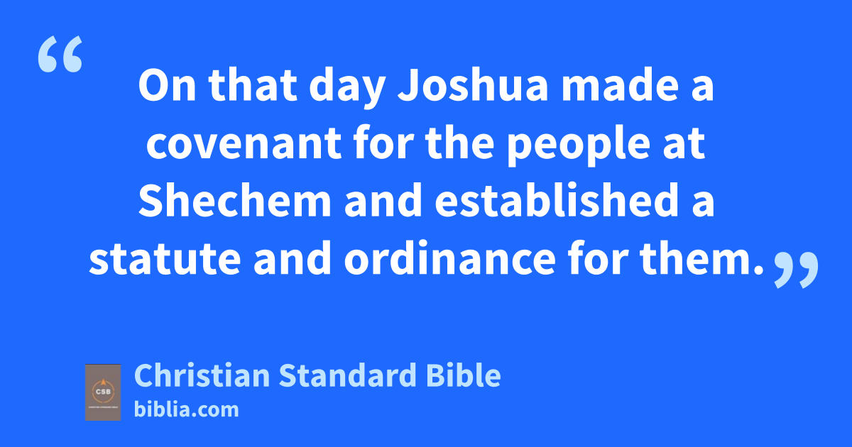 25 On that day Joshua made a covenant for the people at Shechem and established a statute and ordinance for them. 26 Joshua recorded these things in the book of the law of God;a he also took a large stone and set it up there under the oak at the sanctuary of the Lord. 27 And Joshua said to all the people, “You see this stone—it will be a witness against us,b for it has heard all the words the Lord said to us, and it will be a witness against you, so that you will not deny your God.” 28 Then Joshua sent the people away, each to his own inheritance.