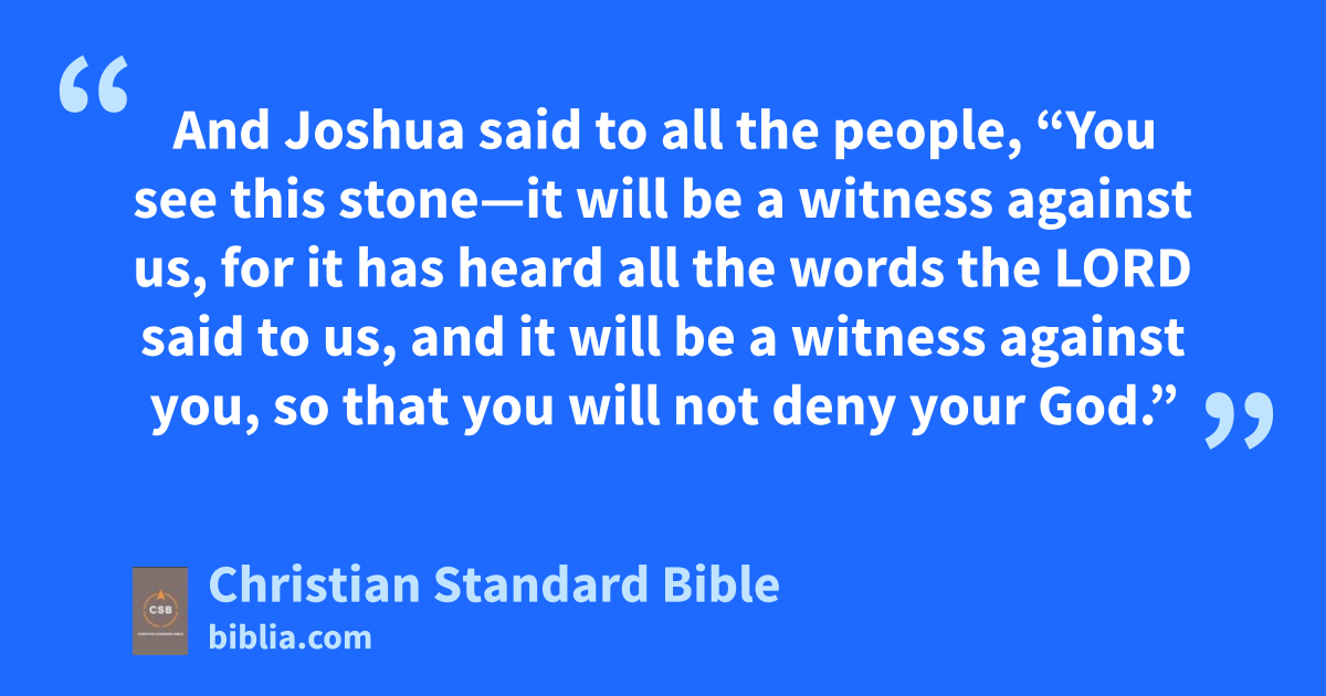 25 On that day Joshua made a covenant for the people at Shechem and established a statute and ordinance for them. 26 Joshua recorded these things in the book of the law of God;a he also took a large stone and set it up there under the oak at the sanctuary of the Lord. 27 And Joshua said to all the people, “You see this stone—it will be a witness against us,b for it has heard all the words the Lord said to us, and it will be a witness against you, so that you will not deny your God.” 28 Then Joshua sent the people away, each to his own inheritance.