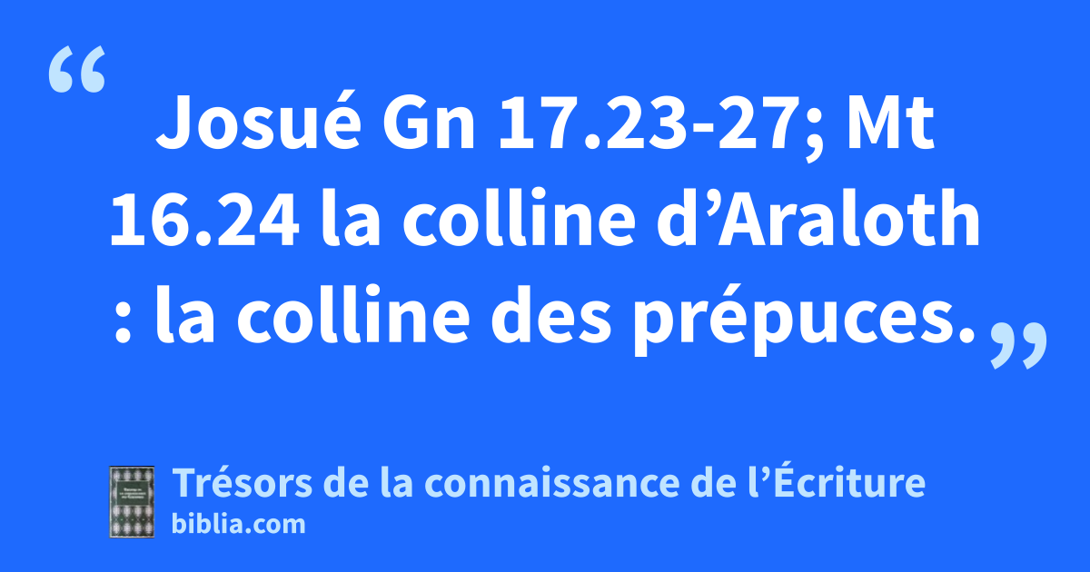 Josué Gn 17.23-27; Mt 16.24 la colline d’Araloth : la colline des prépuces.