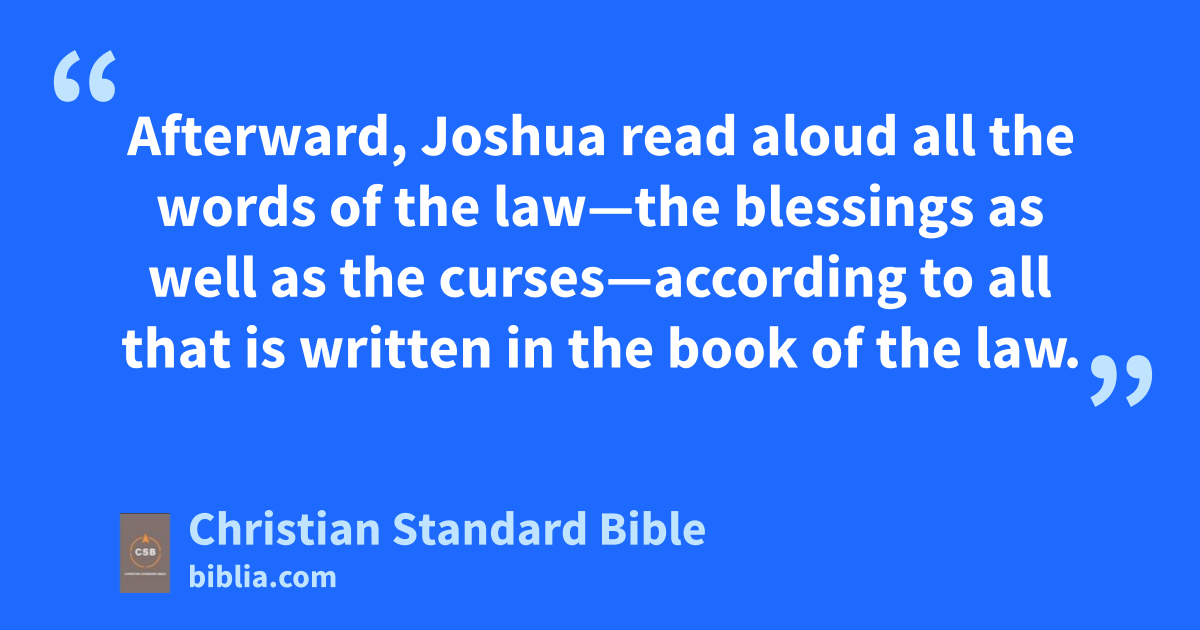 30 At that time Joshua built an altar on Mount Ebalf to the Lord, the God of Israel, 31 just as Moses the Lord’s servant had commanded the Israelites. He built it according to what is written in the book of the law of Moses: an altar of uncut stones on which no iron tool has been used.g Then they offered burnt offerings to the Lord and sacrificed fellowship offerings on it. 32 There on the stones, Joshua copied the law of Moses, which he had written in the presence of the Israelites.h 33 All Israel—resident alien and citizen alike—with their elders, officers, and judges, stood on either side of the ark of the Lord’s covenant facing the Levitical priests who carried it. Half of them were in front of Mount Gerizim and half in front of Mount Ebal,i as Moses the Lord’s servant had commanded earlier concerning blessing the people of Israel.j 34 Afterward, Joshua read aloud all the words of the law—the blessings as well as the curses—according to all that is written in the book of the law. 35 There was not a word of all that Moses had commanded that Joshua did not read before the entire assembly of Israel, including the women, the dependents, and the resident aliens who lived among them.k