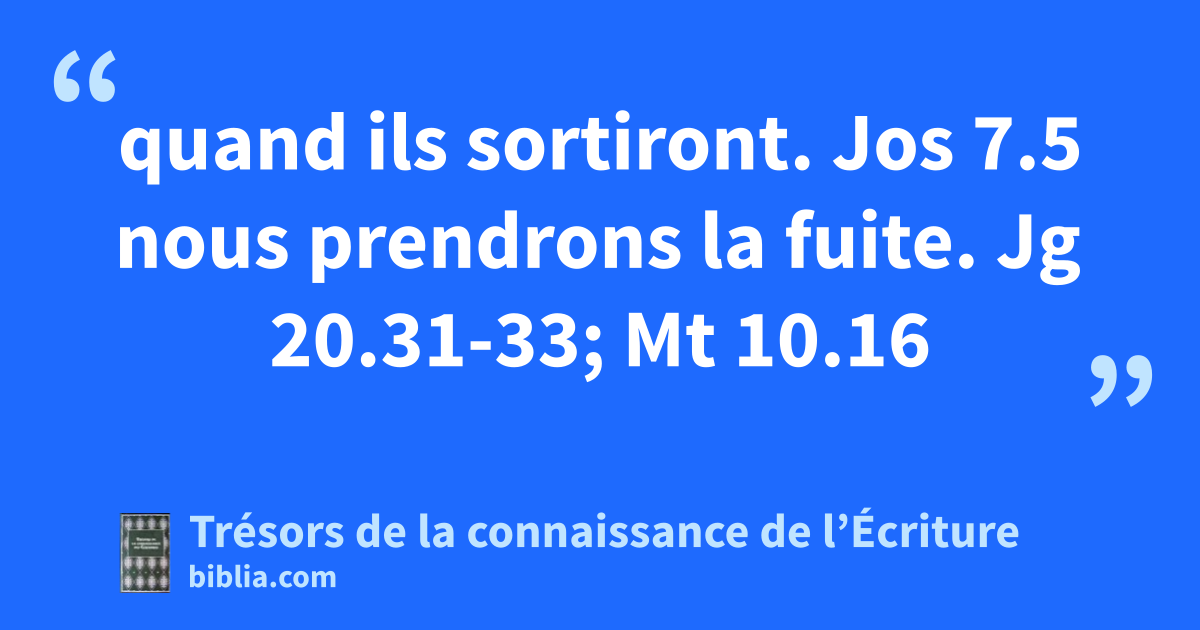 quand ils sortiront. Jos 7.5 nous prendrons la fuite. Jg 20.31-33; Mt 10.16