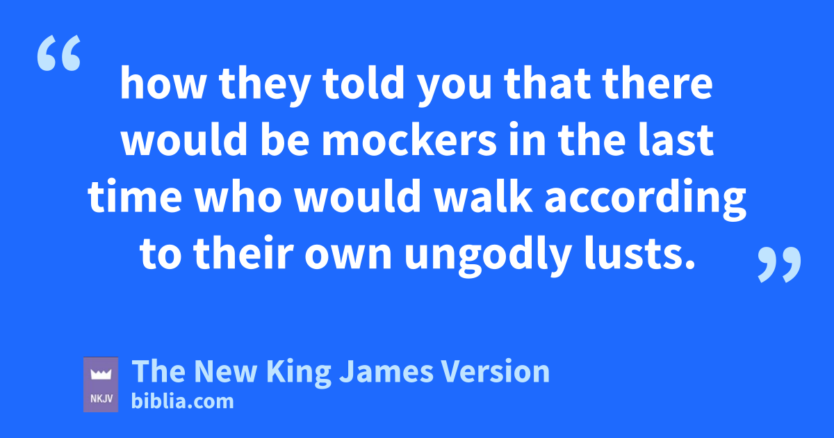 16 These are grumblers, complainers, walking according to their own lusts; and they tmouth great swelling words, uflattering people to gain advantage. 17 vBut you, beloved, remember the words which were spoken before by the apostles of our Lord Jesus Christ: 18 how they told you that wthere would be mockers in the last time who would walk according to their own ungodly lusts. 19 These are 9sensual persons, who cause divisions, not having the Spirit.