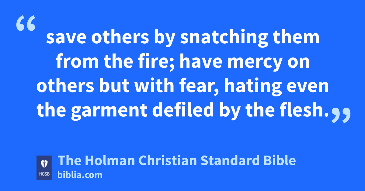 20 But you, dear friends, as you build yourselves up in your most holy faith and pray in the Holy Spirit, t 21 keep yourselves in the love of God, u expecting the mercy of our Lord Jesus Christ for eternal life. 22 Have mercy on those who doubt; 23 save others by snatching them from the fire; v have mercy on others but with fear, w hating x even the garment y defiled by the flesh.