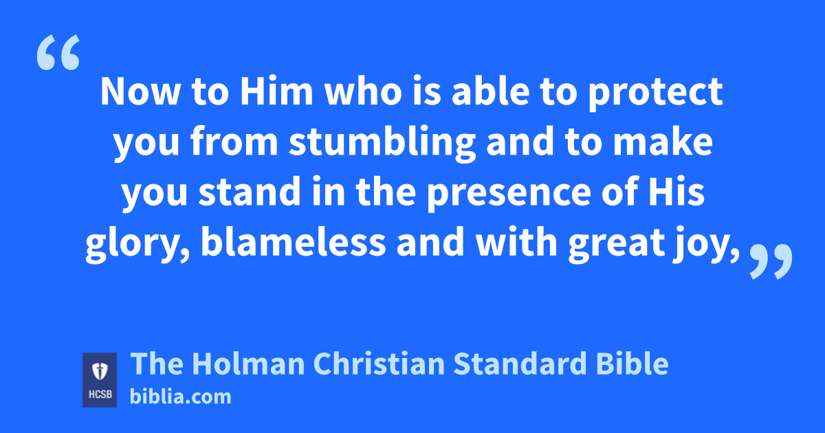 24 Now to Him z who is able to protect you from stumbling a and to make you stand in the presence of His glory, blameless b and with great joy, 25 to the only c God our Savior, through Jesus Christ our Lord, d be glory, majesty, power, and authority before all time, e now and forever. * Amen.