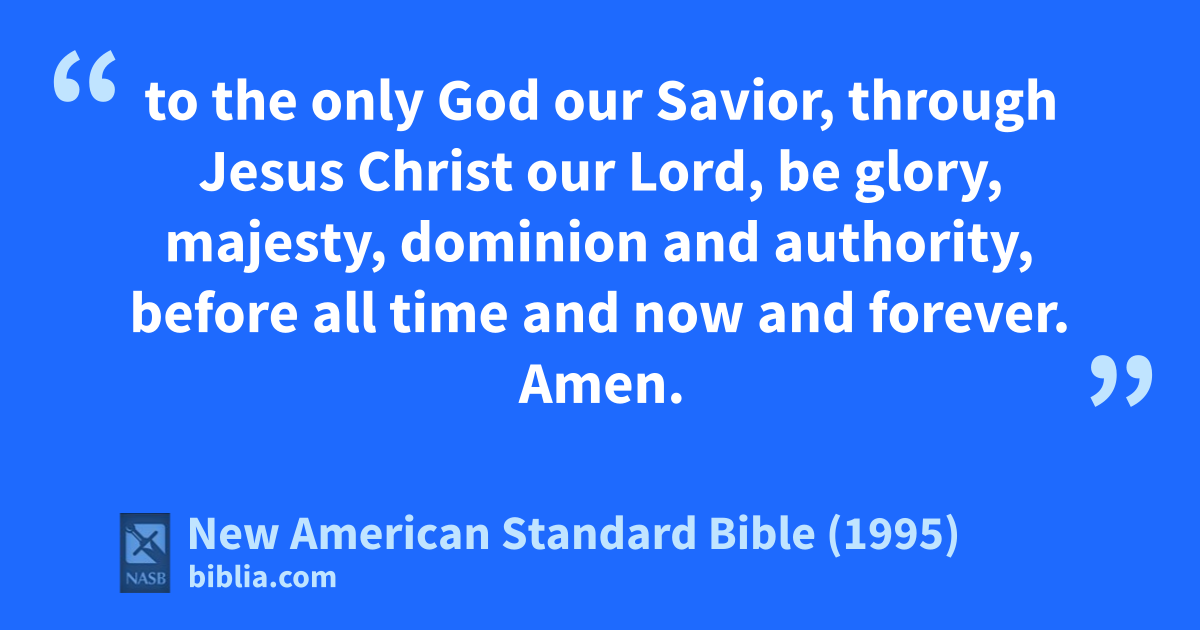 25 to the aonly bGod our Savior, through Jesus Christ our Lord, cbe glory, majesty, dominion and authority, dbefore all time and now and 1forever. Amen.
