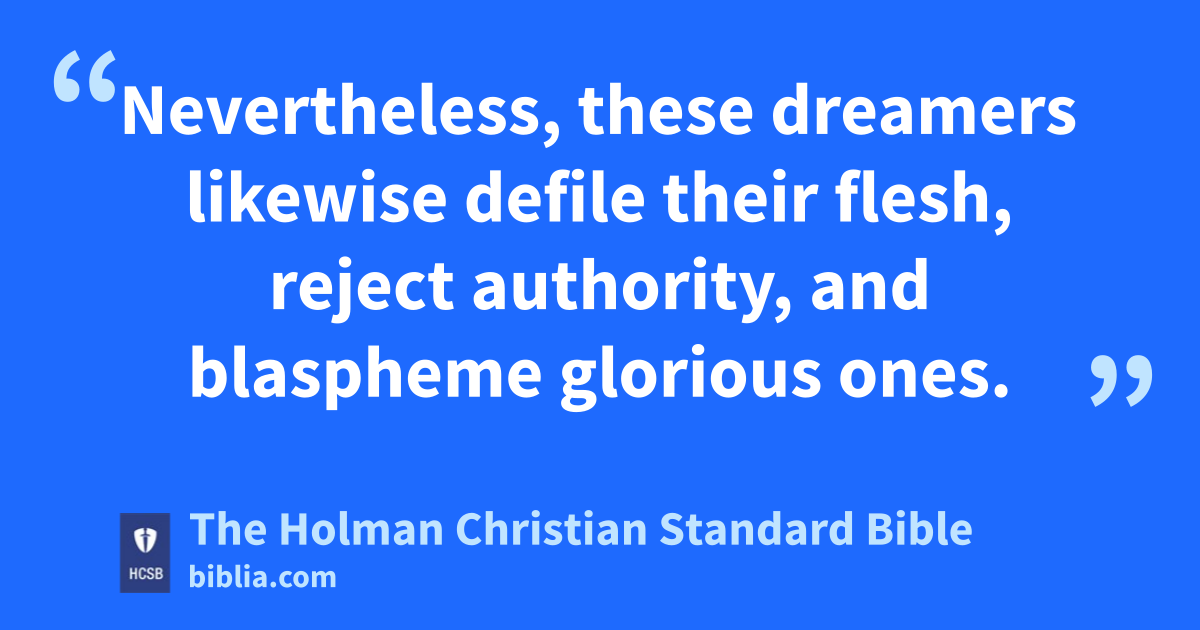 8 Nevertheless, these dreamers likewise defile their flesh, reject authority, and blaspheme glorious ones. u 9 Yet Michael v the archangel, w when he was disputing with the Devil x in a debate about Moses’ y body, did not dare bring an abusive condemnation against him but said, “The Lord rebuke you!” 10 But these people blaspheme anything they don’t understand. What they know by instinct like unreasoning animals—they destroy themselves with these things. 11 Woe to them! For they have traveled in the way of Cain, z have abandoned themselves to the error of Balaam a for profit, and have perished in Korah’s rebellion. b