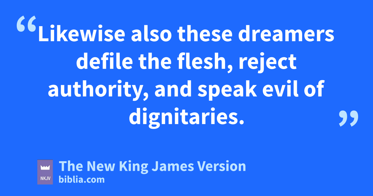 8 iLikewise also these dreamers defile the flesh, reject authority, and jspeak evil of 5dignitaries. 9 Yet Michael the archangel, in 6contending with the devil, when he disputed about the body of Moses, dared not bring against him a reviling accusation, but said, k“The Lord rebuke you!” 10 lBut these speak evil of whatever they do not know; and whatever they know naturally, like brute beasts, in these things they corrupt themselves. 11 Woe to them! For they have gone in the way mof Cain, nhave run greedily in the error of Balaam for profit, and perished oin the rebellion of Korah.