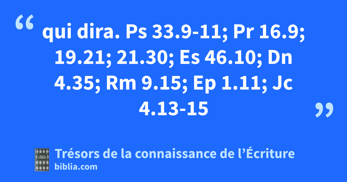 qui dira. Ps 33.9-11; Pr 16.9; 19.21; 21.30; Es 46.10; Dn 4.35; Rm 9.15; Ep 1.11; Jc 4.13-15