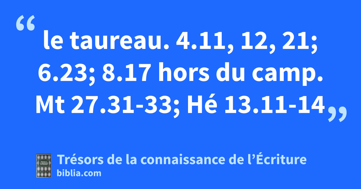 le taureau. 4.11, 12, 21; 6.23; 8.17 hors du camp. Mt 27.31-33; Hé 13.11-14