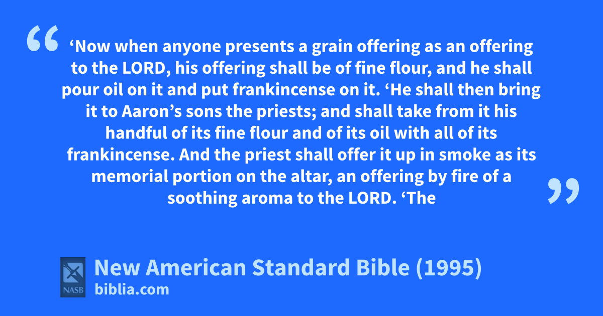 1 ‘Now when anyone presents a agrain offering as an offering to the Lord, his offering shall be of fine flour, and he shall pour oil on it and put frankincense on it.