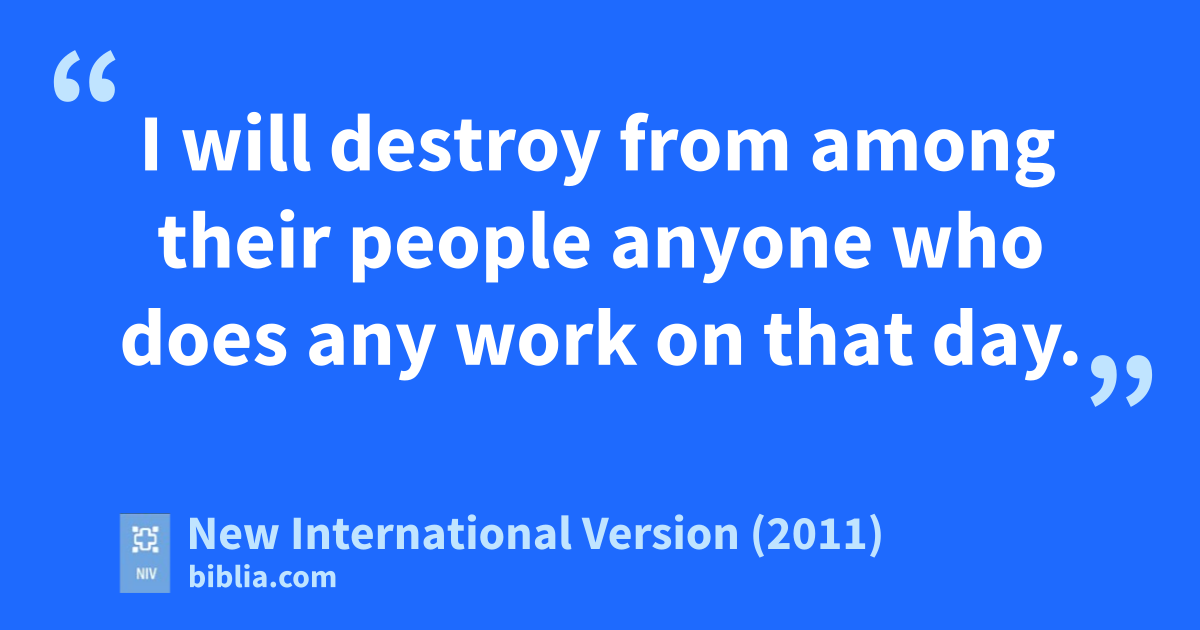 26 The Lord said to Moses, 27 “The tenth day of this seventh monthq is the Day of Atonement.r Hold a sacred assemblys and deny yourselves,d and present a food offering to the Lord. 28 Do not do any workt on that day, because it is the Day of Atonement, when atonement is made for you before the Lord your God. 29 Those who do not deny themselves on that day must be cut off from their people.u 30 I will destroy from among their peoplev anyone who does any work on that day. 31 You shall do no work at all. This is to be a lasting ordinancew for the generations to come, wherever you live. 32 It is a day of sabbath restx for you, and you must deny yourselves. From the evening of the ninth day of the month until the following evening you are to observe your sabbath.”y