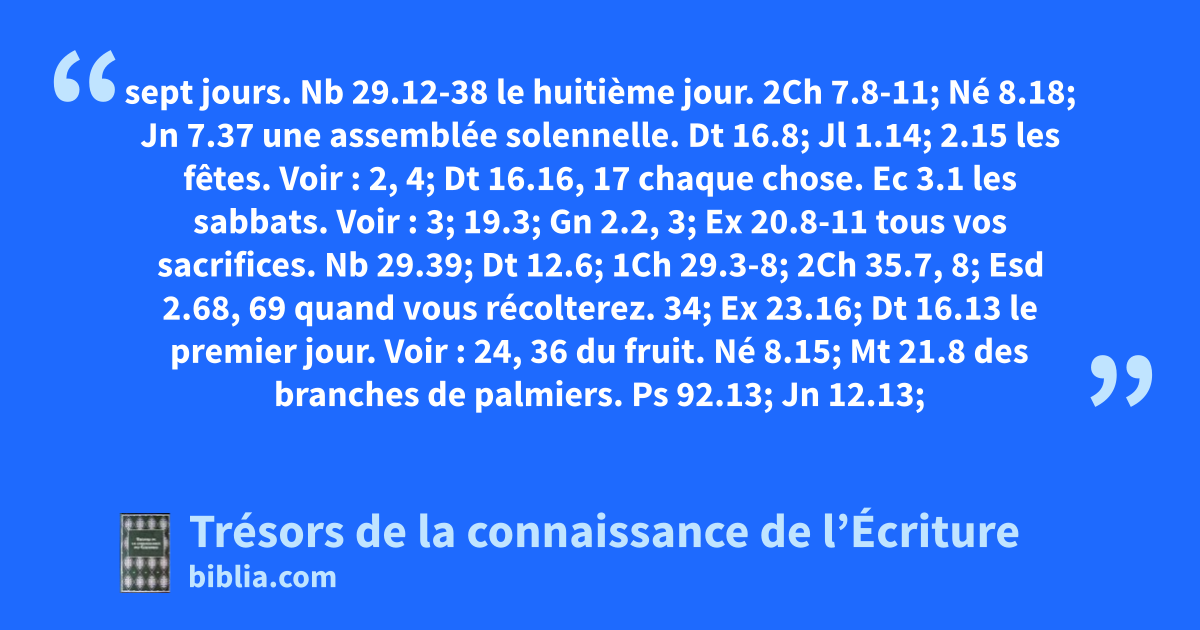 sept jours. Nb 29.12-38 le huitième jour. 2Ch 7.8-11; Né 8.18; Jn 7.37 une assemblée solennelle. Dt 16.8; Jl 1.14; 2.15