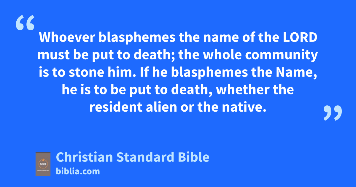 13 Then the Lord spoke to Moses: 14 “Bring the one who has cursed to the outside of the camp and have all who heard him lay their hands on his head; then have the whole community stone him.u 15 And tell the Israelites: If anyone curses his God, he will bear the consequences of his sin. 16 Whoever blasphemes the name of the Lord must be put to death;v the whole community is to stone him. If he blasphemes the Name, he is to be put to death, whether the resident alien or the native.