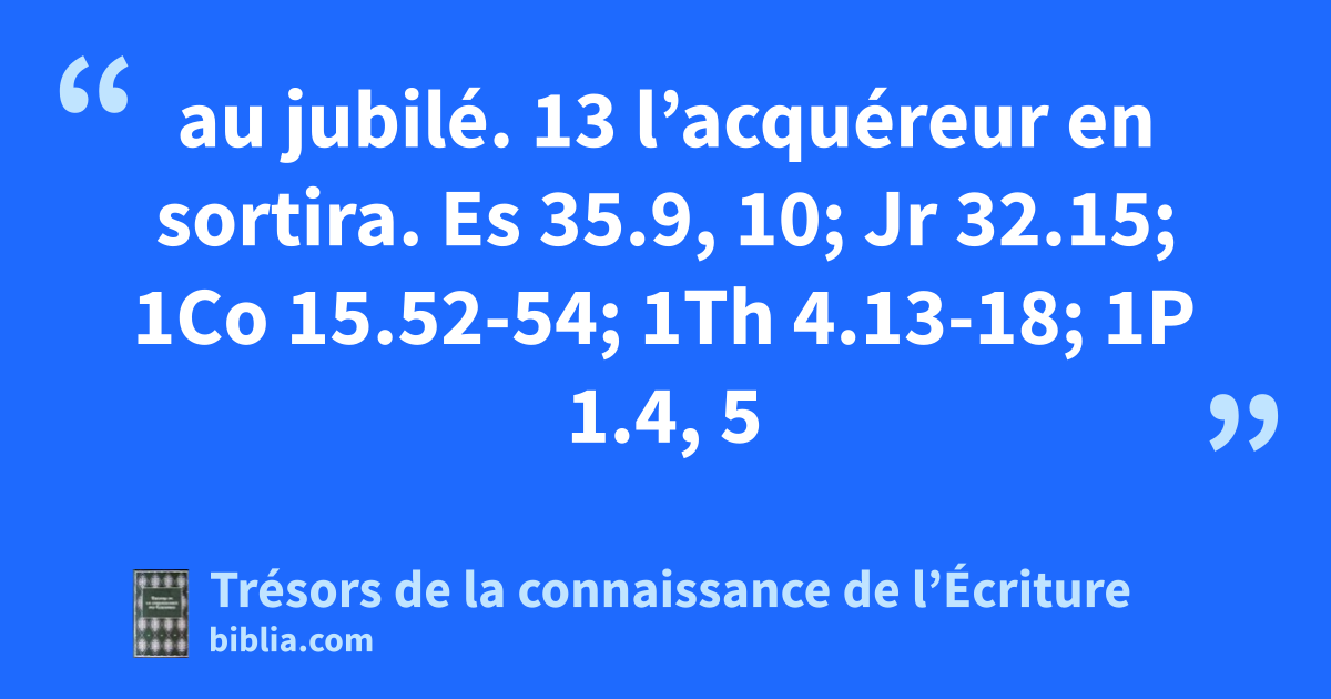 au jubilé. 13 l’acquéreur en sortira. Es 35.9, 10; Jr 32.15; 1Co 15.52-54; 1Th 4.13-18; 1P 1.4, 5