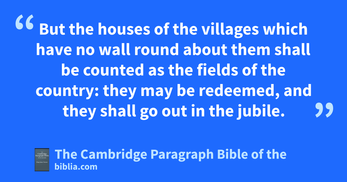 23 The land shall not be sold * for ever: for xthe land is mine; for ye were ystrangers and sojourners with me. 24 And in all the land of your possession ye shall grant a redemption for the land. 25 If thy brother be waxen poor, and hath sold away some of his possession, and if zany of his kin come to redeem it, athen shall he redeem that which his brother sold. 26 And if the man have none to redeem it, and * himself be able to redeem it; 27 then blet him count the years of the sale thereof, and restore the overplus unto the man to whom he sold it; that he may return unto his possession. 28 But if he be not able to restore it to him, then that which is sold shall remain in the hand of him that hath bought it until the year of jubile: and in the jubile it shall go out, and he shall return unto his possession. 29 And if a man sell a dwelling house in a walled city, then he may redeem it within a whole year after it is sold; within ca full year may he redeem it. 30 And if it be not redeemed within the space of a full year, then the house that is in the walled city shall be stablished for ever to him that bought it throughout his generations: it shall not go out in the jubile. 31 But the houses of the villages which have no wall round about them shall be counted as the fields of the country: * they may be redeemed, and they shall go out in the jubile. 32 Notwithstanding dthe cities of the Levites, and the houses of the cities of their possession, may the Levites redeem at any time. 33 And if * a man purchase of the Levites, then the house that was sold, and the city of his possession, eshall go out in the year of jubile: for the houses of the cities of the Levites are their possession among the children of Israel. 34 But the field fof the suburbs of their cities may not be sold; for it is their perpetual possession.
