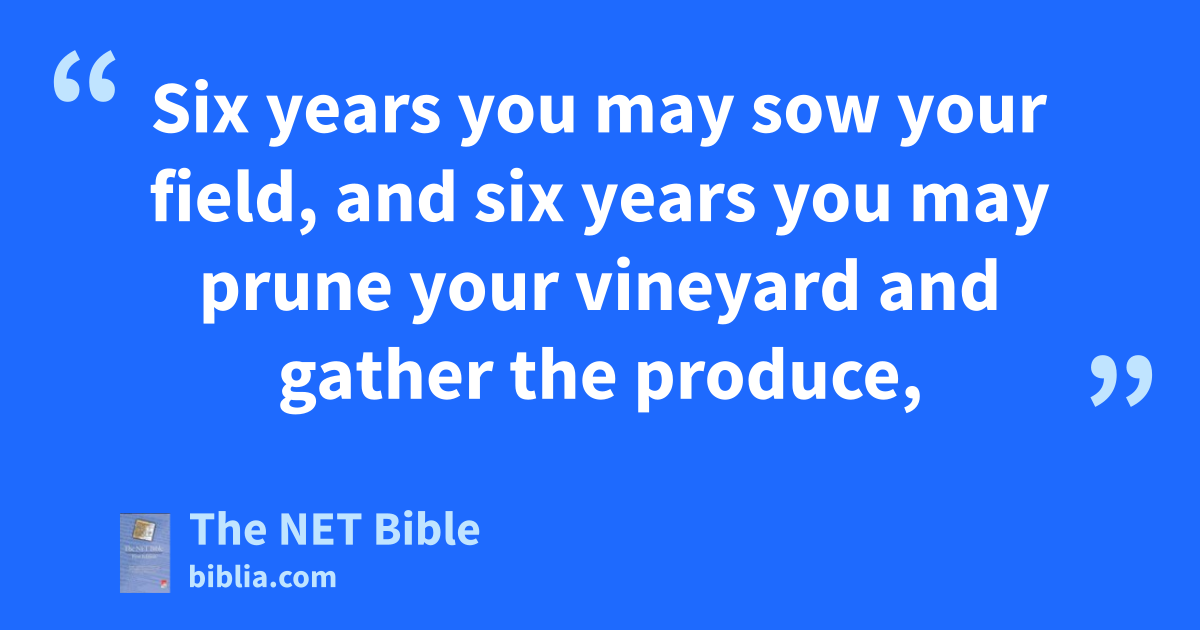 25:1 The Lord spoke to Moses at Mount Sinai: 25:2 “Speak to the Israelites and tell them, ‘When you enter the land that I am giving you, the land must observe a Sabbath1 to the Lord. 25:3 Six years you may sow your field, and six years you may prune your vineyard and gather the produce,2 25:4 but in the seventh year the land must have a Sabbath of complete rest3—a Sabbath to the Lord. You must not sow your field or4 prune your vineyard. 25:5 You must not gather in the aftergrowth of your harvest and you must not pick the grapes of your unpruned5 vines; the land must have a year of complete rest. 25:6 You may have the Sabbath produce6 of the land to eat—you, your male servant, your female servant, your hired worker, the resident foreigner who stays with you,7 25:7 your cattle, and the wild animals that are in your land—all its produce will be for you8 to eat.