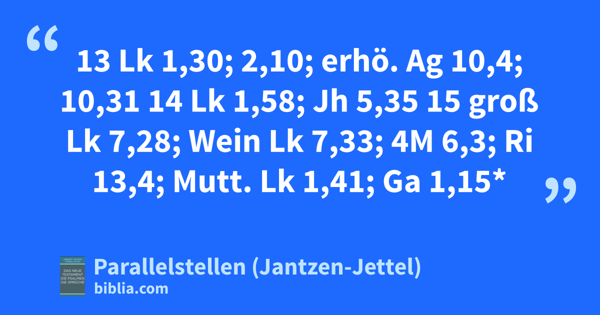15 groß Lk 7,28; Wein Lk 7,33; 4M 6,3; Ri 13,4; Mutt. Lk 1,41; Ga 1,15*