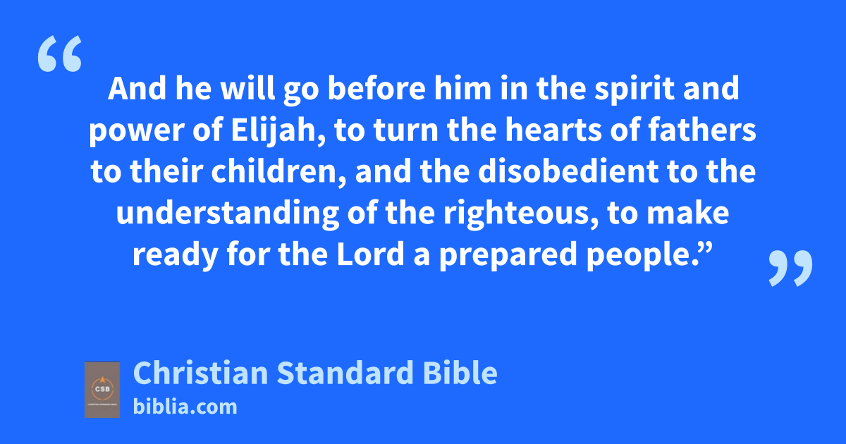8 When his division was on dutyl and he was serving as priest before God, 9 it happened that he was chosen by lot,m according to the custom of the priesthood, to enter the sanctuary of the Lord and burn incense.n 10 At the hour of incense the whole assembly of the people was praying outside. 11 An angel of the Lordo appeared to him, standing to the right of the altar of incense.p 12 When Zechariah saw him, he was terrified and overcome with fear.q 13 But the angel said to him, “Do not be afraid,r Zechariah, because your prayer has been heard.s Your wife Elizabeth will bear you a son, and you will name him John.t 14 There will be joy and delight for you, and many will rejoice at his birth. 15 For he will be great in the sight of the Lord and will never drink wine or beer.u He will be filled with the Holy Spiritv while still in his mother’s womb.w 16 He will turn many of the children of Israel to the Lord their God.x 17 And he will go before him in the spirit and power of Elijah, to turn the hearts of fathers to their children,y and the disobedient to the understanding of the righteous, to make ready for the Lord a prepared people.”z