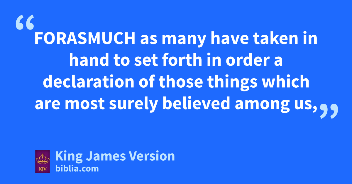 1 Forasmuch as many have taken in hand to set forth in order aa declaration of those things which are bmost surely believed among us, 2 Even as cthey delivered them unto us, which dfrom the beginning were eeyewitnesses, and fministers of gthe word; 3 hIt seemed good to me also, ihaving had perfect understanding of all things kfrom the very first, to write unto thee lin order, mmost excellent nTheophilus, 4 oThat thou mightest know the certainty of those things, wherein thou hast pbeen instructed.
