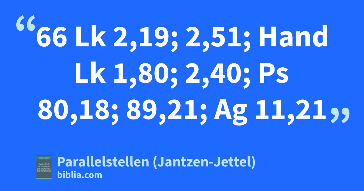 66 Lk 2,19; 2,51; Hand Lk 1,80; 2,40; Ps 80,18; 89,21; Ag 11,21