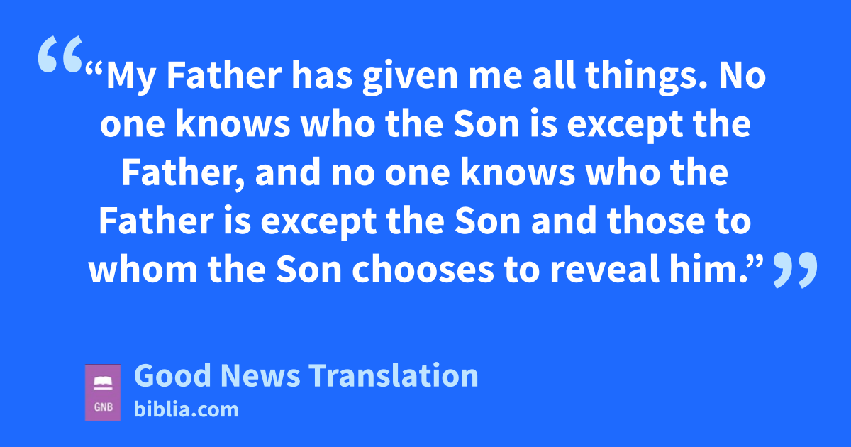 22 *“My Father has given me all things. No one knows who the Son is except the Father, and no one knows who the Father is except the Son and those to whom the Son chooses to reveal him.”