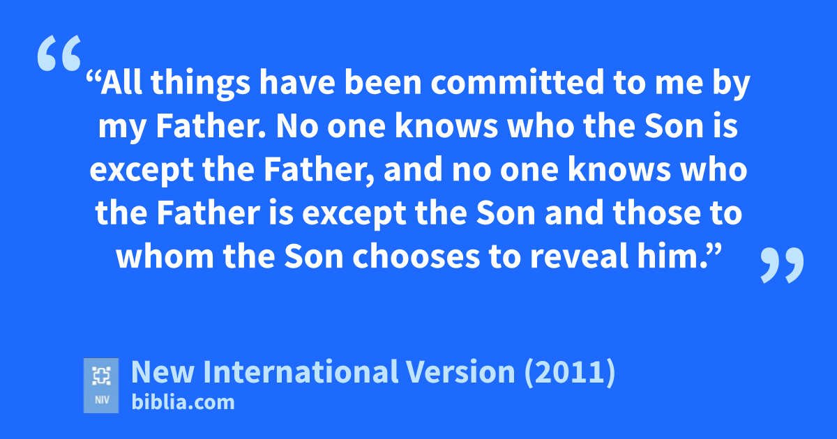 22 “All things have been committed to me by my Father.n No one knows who the Son is except the Father, and no one knows who the Father is except the Son and those to whom the Son chooses to reveal him.”o