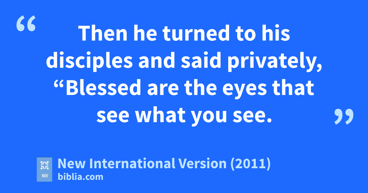 23 Then he turned to his disciples and said privately, “Blessed are the eyes that see what you see. 24 For I tell you that many prophets and kings wanted to see what you see but did not see it, and to hear what you hear but did not hear it.”p